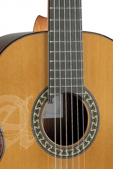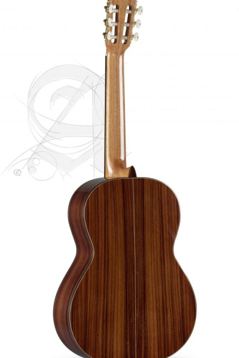 O modelo 5P de Guitarras Alhambra constitui um passo acima ao modelo 4P. Modifica-se a construção da caixa garantindo uma maior robustez e mantém-se os detalhes característicos como o verniz, a escala em ébano, afinadores de qualidade superior e a utilização da madeira Pau Santo indiano para os aros e costas.