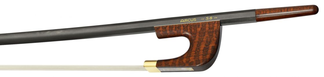 The development of the latest generation of our bass bows was a truly fascinating experience. It now looks like we have disentangled the Gordian knot and found the ideal sound and playing characteristics without the need to make any compromises. The new Arcus bass bows are incredibly open and free sounding and produce almost no noise, which renders the sound much more singing and improves projection dramatically. The elasticity of the sticks match the elasticity of modern bass strings precisely so bouncing bows are very natural and easy to play. The fast response provides a new level of articulation and precision. Have you also heard of the idea that bass bows should be very heavy? Basic physics tell us that a heavy bow will be slow to move and hard work to push around. Advanced physics teach us that they also dampen the vibration of the strings. In contrast to makers of wooden bows we are free to choose weight and elasticity for our bows and have found a the ideal solution in a design that consists of a relatively heavy head and heel and a very light shaft. Once you have learned how to make best use of this kind of bow you will never want to play anything else. By the way, these bows speak so easily that you can play all kinds of strings with them really well, even those that are normally used only for pizzicatto, like Spirocores for example.