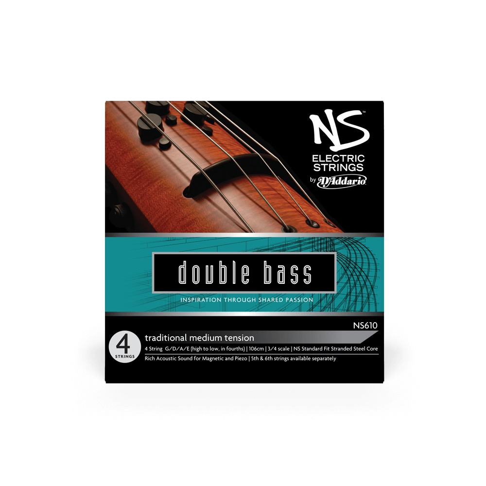 Designed in partnership with Ned Steinberger, the D'Addario Electric traditional bass strings are designed to enhance the expressive range of tone for even the most discerning players. These strings are constructed and tensioned similarly to acoustic bass strings for a warm tone and great bow response. These electric strings are designed for electric upright basses with standard playing lengths, but shorter overall lengths (no tailpiece). The NS Electric Traditional Bass string set consists of regular tuning strings (G, D, A, E). Additional low B and high C are available as single strings.