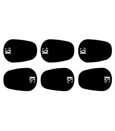 Os protetores são cortados em material preto de 0,8 mm de espessura.