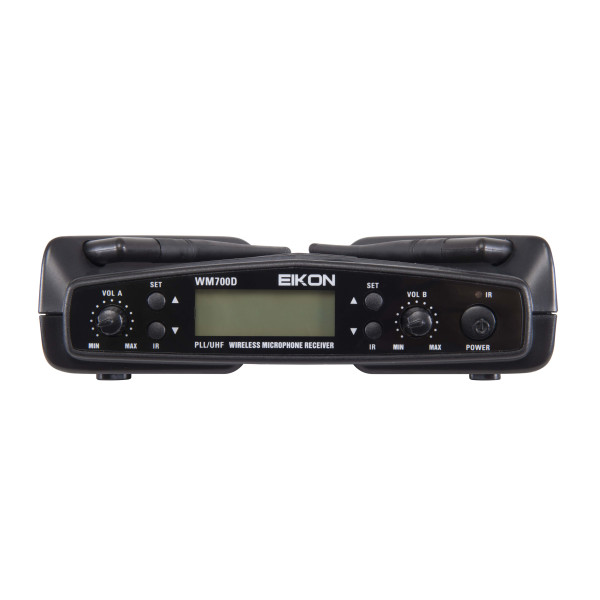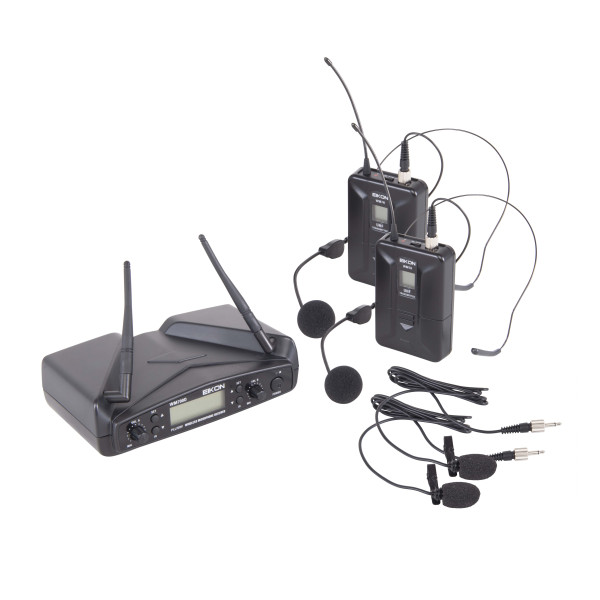 The WM700 wireless microphone system offers 5 different combinations with single channel receiver, dual channel receiver, handheld transmitter and bodypack transmitter with headset microphone.