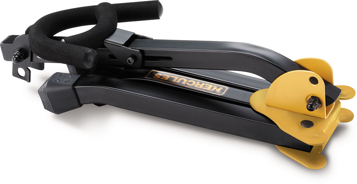 The HERCULES Saxophone Stand DS530BB has a folding yoke, an adjustable backrest, and locking pins that are secure and stable for use with Tenor or Alto Saxophones.