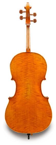 The Jonathan Li is crafted of the most select, stunning flamed maple back with a straight medium-grain spruce top. A refined, golden colored oil varnish enhances the tonal quality of this instrument. Each instrument is meticulously calibrated for optimum sound production. The fittings are boxwood with a light colored wood trim. Celli are available in Stradivari, Guarneri, Gagliano, and Montagnana patterns.