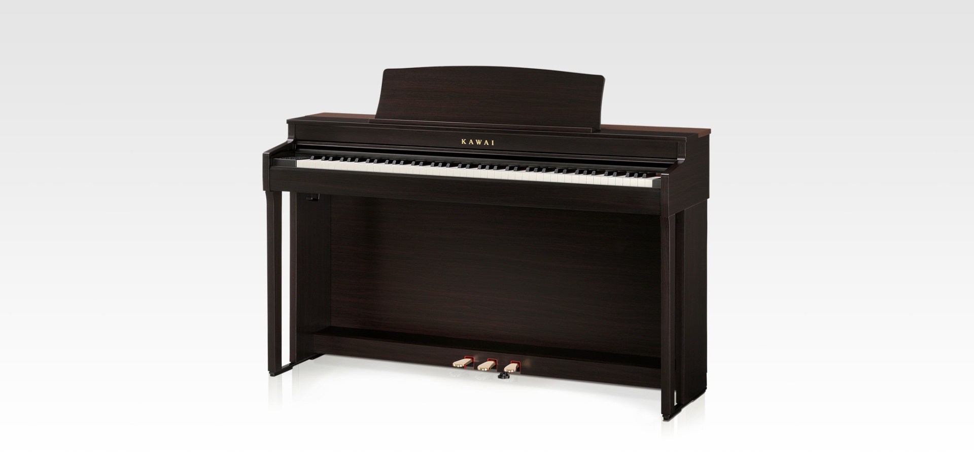 The CN Series’ Responsive Hammer III keyboard action has been developed to recreate the touch feeling of playing a Kawai grand piano. Each key is authentically weighted using metal hammers which are ‘graded’ (i.e. slightly heavier in the bass region, and lighter in treble) just like an acoustic piano. These weights also allow released keys to return to their original position without the aid of springs, resulting in a smooth, natural playing experience.
