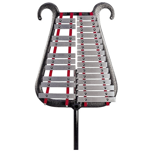 In the 2 octave range, the Musser Bell Lyra features satin silver finish aluminum bars. Bell Lyra are available in three frame weights: light, medium and extra-duty. Complete with mallets, plumes, strap and cover, Bell Lyra are also available with an add-on stand and optional case.