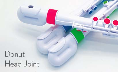 Também aprimoramos a junta da cabeça jFlute, substituindo a cabeça curva pela nova junta inovadora "rosca". A rosquinha é uma solução elegante que ainda reduz o alcance, mantendo o orifício da embocadura alinhado com as teclas. Isso ajuda jovens iniciantes a manter a flauta equilibrada, além de facilitar a instalação da flauta para cada lição. Você ficará surpreso e emocionado com o tom ressonante do "donut".