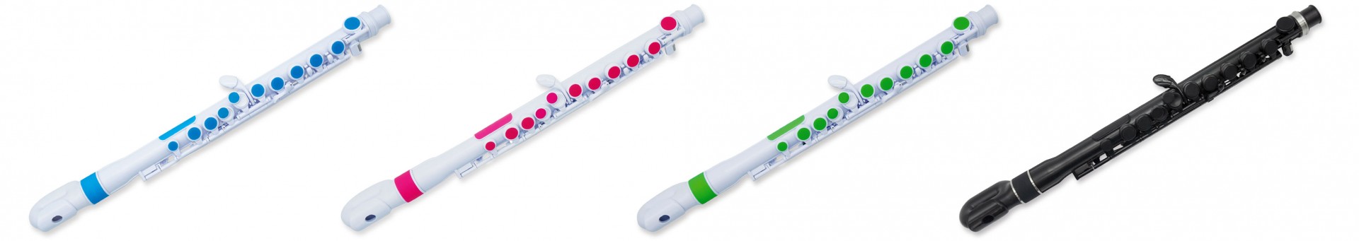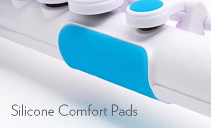 Durante o início de 2019, atualizamos a flauta Nuvo para incluir várias melhorias interessantes. Isso inclui melhorar a sensação e o desempenho das molas, além da adição de touch pads de silicone para as teclas. Isso proporciona uma sensação confortável sob os dedos e evita possíveis problemas de alergia.