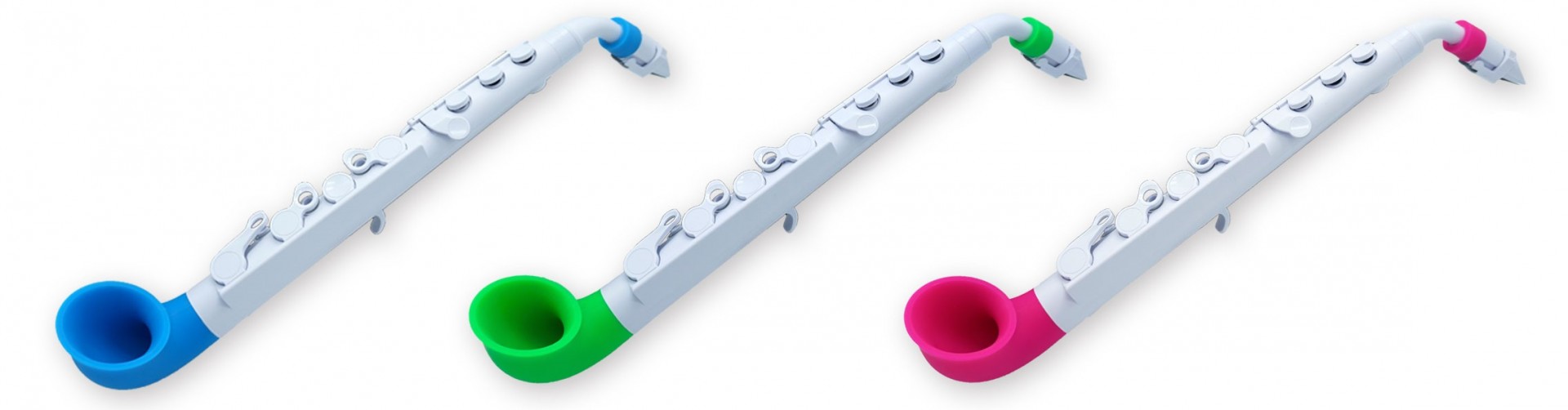 O jSax é leve e super durável e é 100% à prova d'água, o que o torna muito adequado para a sala de aula, além de ser um instrumento de viagem divertido.