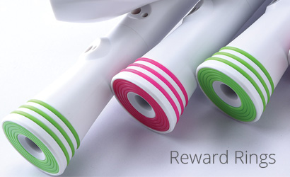 Os três anéis de borracha na campanula podem ser removidos e depois utilizados como um sistema de recompensa, à medida que as crianças passam nos marcos de aprendizagem.