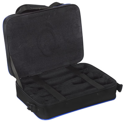 Estojos acolchoados de poliéster plastificado e forro de veludo. Feito de poliuretano injetado. Sistema de mochila destacável, bolso grande e duas alças. 38x29x11cm. 1,77Kg.