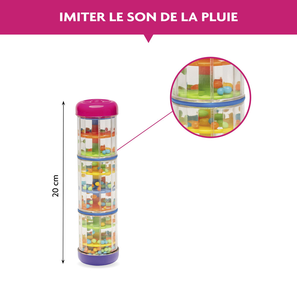 O pau de chuva médio é um instrumento musical original que oferece um aspeto visual marcante para os mais pequenos. Muito colorido e transparente, participa no seu despertar e convida-os a sonhar acordados.