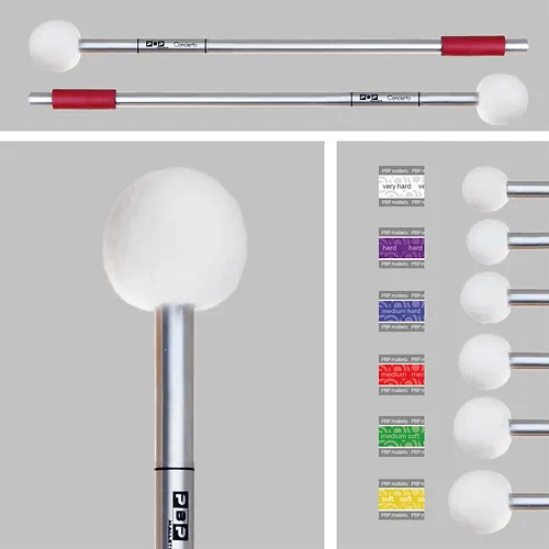 Baqueta de timbal, fabricada con varilla de aluminio de 12mm con cabeza de corcho y fieltro alemán de alta calidad.La dureza veryhard está fabricada con cabeza redonda de 28mm en fieltro alemán de alta dureza y densidad.