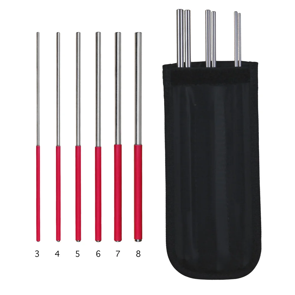 Estuche compuesto por juego de 6 varillas en acero de 22cm de longitud y en diferentes diámetros para proporcionar un amplio abanico dinámico y diversas posibilidades de ejecución. 8mm-7mm-6mm-5mm-4mm-3mm.