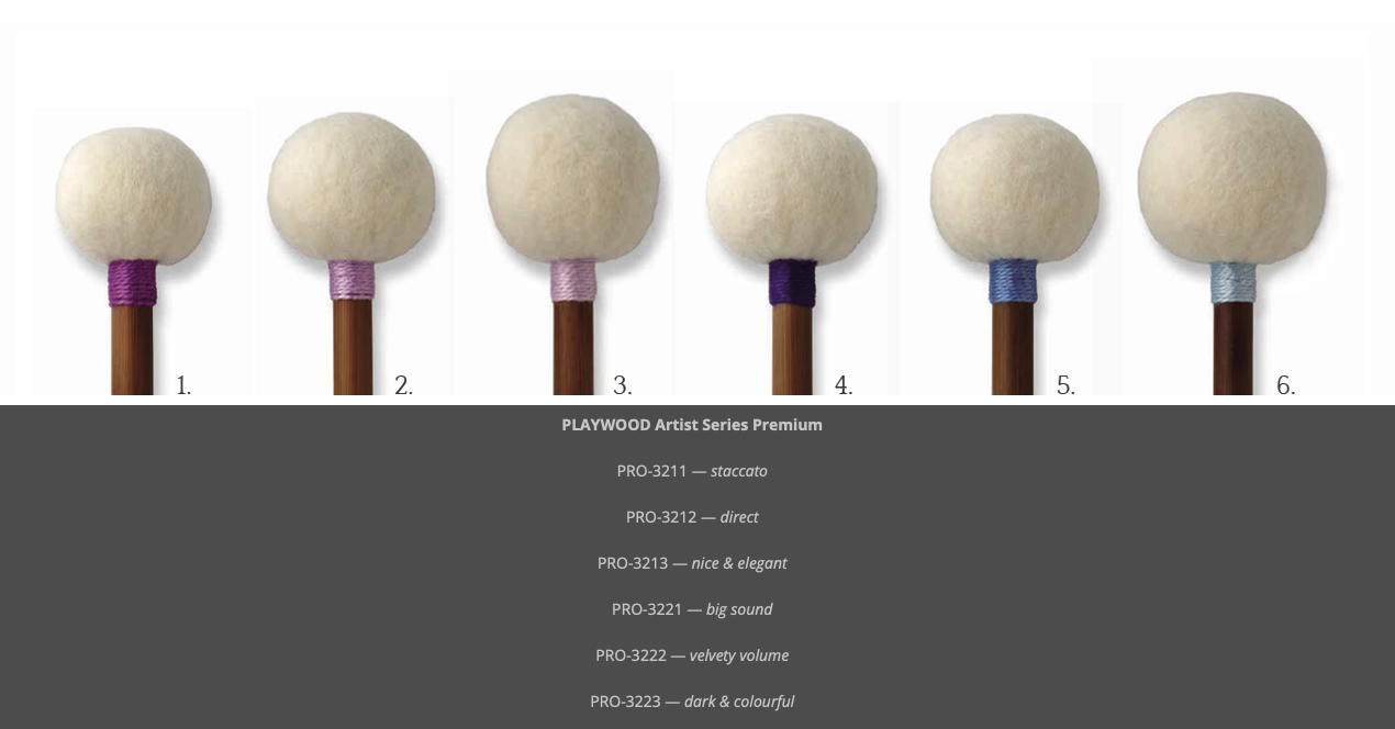 Home Tímpanos Play Wood Artist Series Premium Play Wood Artist Series Premium Modelo PRO-3211 staccato PRO-3212 direct PRO-3213 nice & elegant PRO-3221 big sound PRO-3222 velvety volume PRO-3223 dark & colourful PRO-3231 dark & direct PRO-3232 smooth roll PRO-3233 powerful roll Preço sob consulta Desconto de %. Comprar Contactar Adicionar à wishlist Artist Series PremiumFelt mallets, tonkin shaft, silicone grips Marca Play Wood Características Partilhar