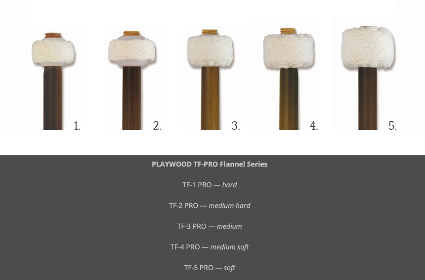 Home Tímpanos Play Wood TF-PRO Series Play Wood TF-PRO Series Modelo TF-1-PRO hard TF-2 PRO medium hard TF-3 PRO medium TF-4 PRO medium soft TF-5 PRO soft 50,00 € Desconto de %. Comprar Contactar Adicionar à wishlist TF-PRO SeriesFlannel mallets, German style, tonkin shaft Marca Play Wood Partilhar