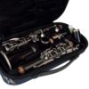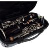 O molde interior injetado em espuma macia forrado com veludo protege com segurança o clarinete.