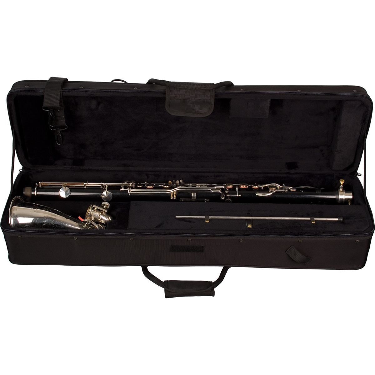 Forro acolchoado macio de veludo Blocos modulares permitem ajustes para corpos mais curtos ou mais longos Faixas elásticas para prender o clarinete baixo Grande compartimento de armazenamento com 3 seções separadas