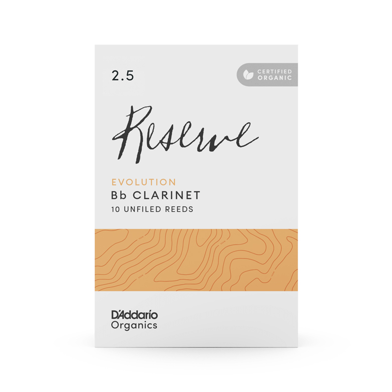 A D'Addario Woodwinds Organic Reserve Evolution apresenta o blank mais espesso (a parte principal da palheta antes do corte final) de toda a linha Reserve para clarinete. Oferece um som redondo, uma coluna (spine) mais pesada para maior projeção, uma ponta mais espessa para melhorar a articulação e uma maior riqueza de timbre e flexibilidade.