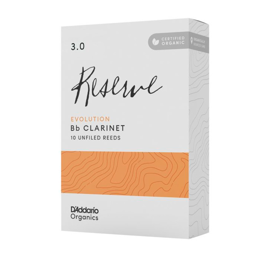 A D'Addario Woodwinds Organic Reserve Evolution apresenta o blank mais espesso (a parte principal da palheta antes do corte final) de toda a linha Reserve para clarinete. Oferece um som redondo, uma coluna (spine) mais pesada para maior projeção, uma ponta mais espessa para melhorar a articulação e uma maior riqueza de timbre e flexibilidade.