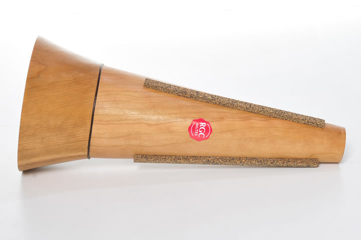 Sordina cónica para bombardino fabricada con madera de cerezo americano y fibras naturales. Diseño de RGC con la colaboración del profesor Antonio Rodríguez.