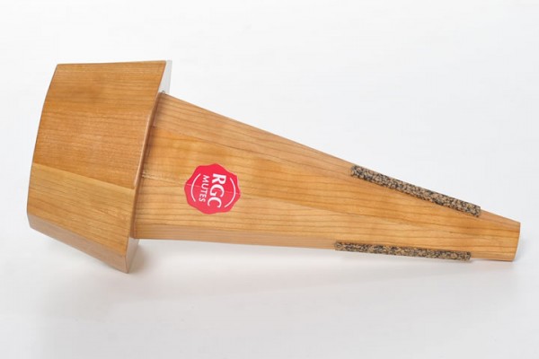 Sordina para trombón tenor, diseño exclusivo RGC, fabricada con cerezo americano. La afinación y el timbre son estables y homogéneos en todos los registros.