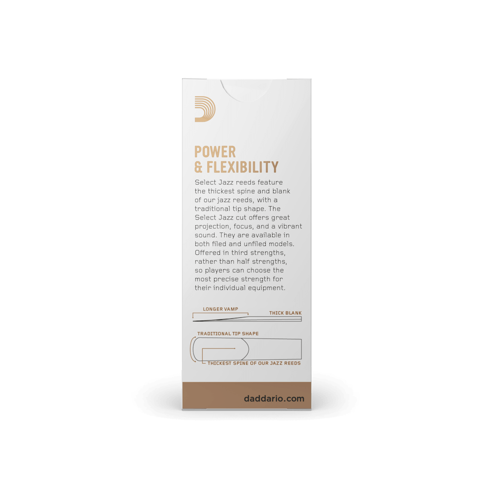 Select Jazz Tenor reeds are cut with a thick blank and spine and feature a traditional tip shape to give your performance clarity, projection, and a robust vibrant sound.