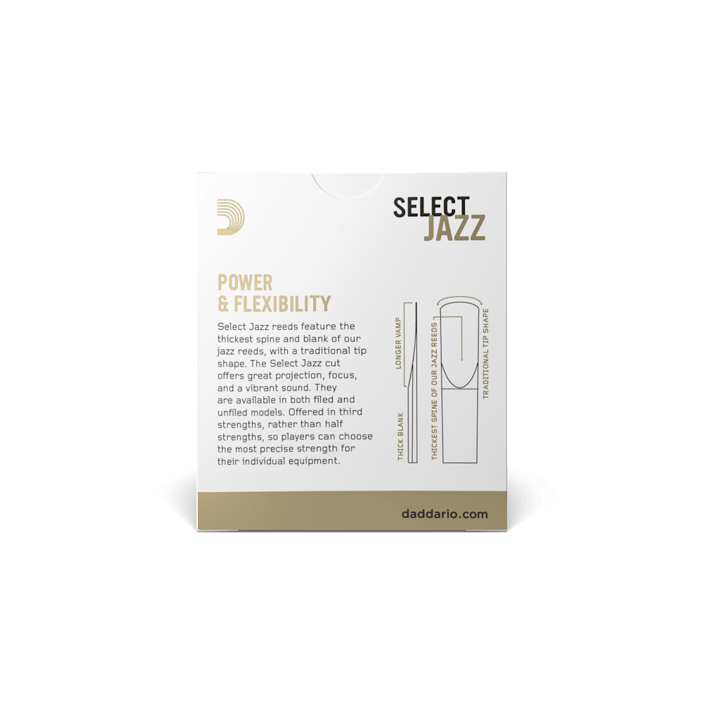 Select Jazz Soprano filed reeds are cut with a thick blank and spine and feature a traditional tip shape to give your performance clarity, projection, and a robust, vibrant sound.