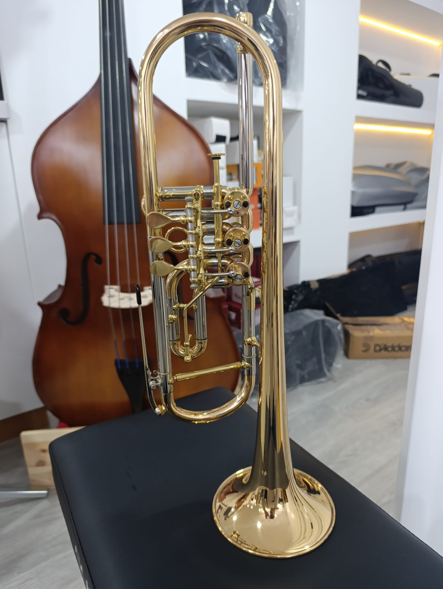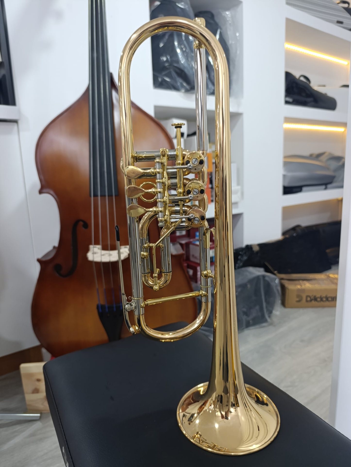 A campânula em latão dourado proporciona uma profundidade sonora e projeção extraordinárias, enquanto o tubo de afinação, também em latão dourado, acrescenta calor e estabilidade ao som. O tudel de parede dupla melhora a resposta e garante uma focalização sonora otimizada.